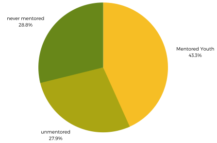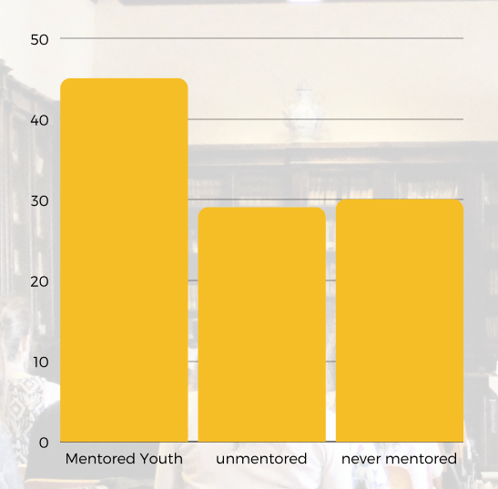 of at-risk youth with an adult mentor are enrolled in higher education, compared with 29 percent of their unmentored peers.